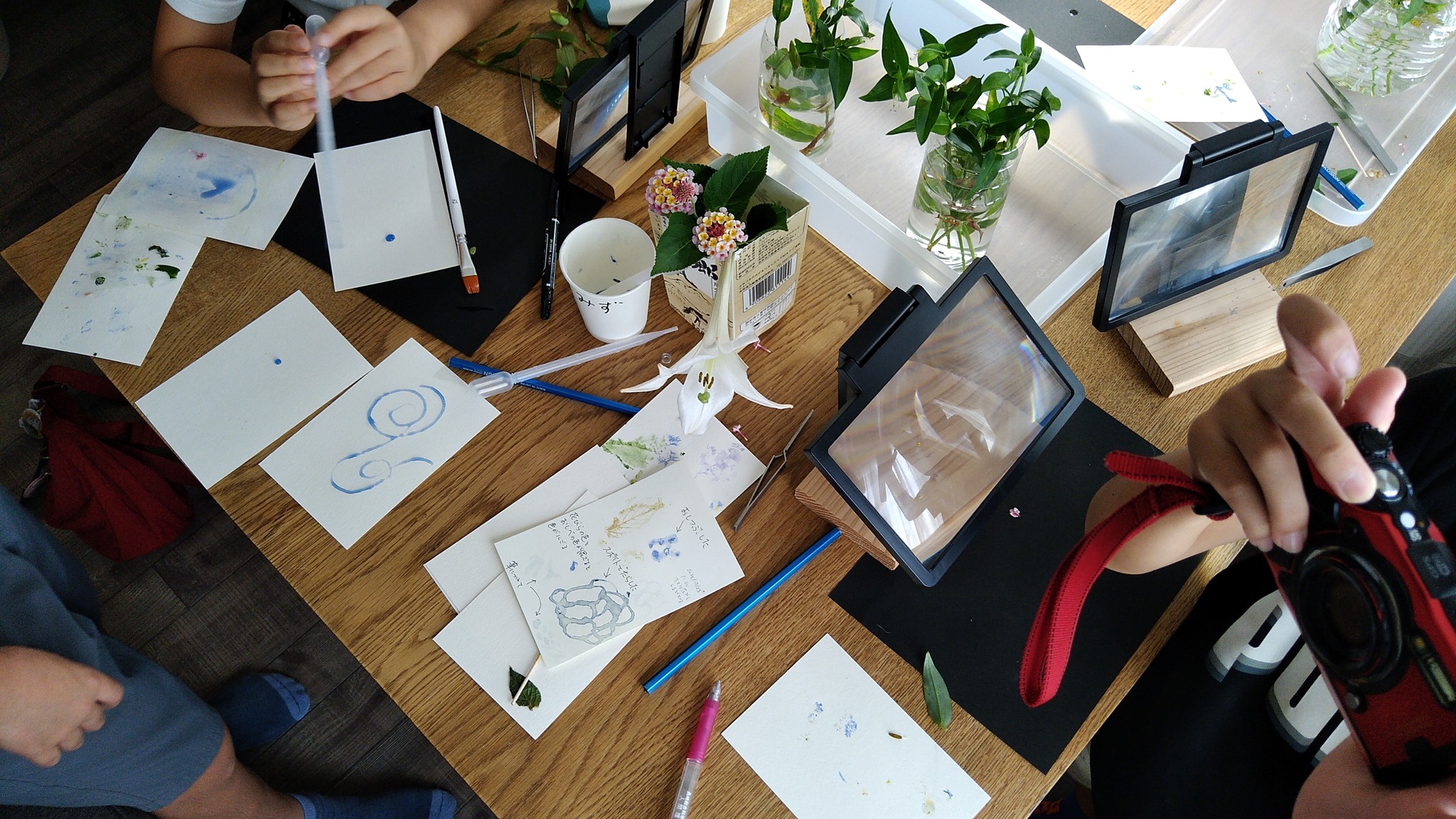あまり科学的なことは教えられなかった気がしますが、3種の花の違いや、繊細さや手触りを感じてくれたと思います。生徒もそれぞれ、楽しい時間をすごしてくれたようでした!