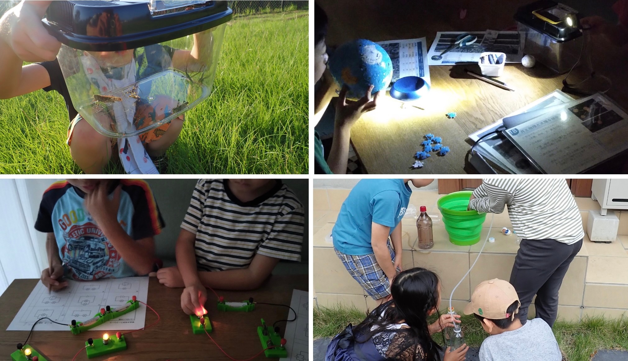 ⑥中秋の名月が話題になる頃に「月と太陽と地球」というテーマで授業をしました。ワークシートで月や太陽との距離を感じてもらったり、模型にライトを当てて月の満ち欠けを観察してもらったりしました。(地学、工作・実験)